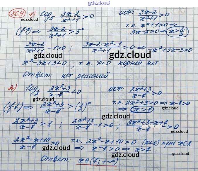 Ответ на задание 869 Учебник Алгебра за 10 (десятый) класс Колягин, Ткачёва, Федорова, Шабунин Базовый и углубленный уровень 2017