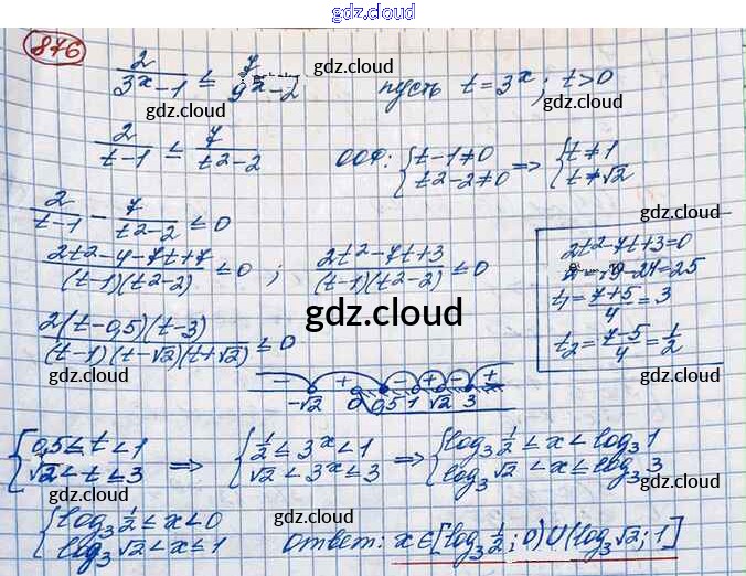 Ответ на задание 876 Учебник Алгебра за 10 (десятый) класс Колягин, Ткачёва, Федорова, Шабунин Базовый и углубленный уровень 2017