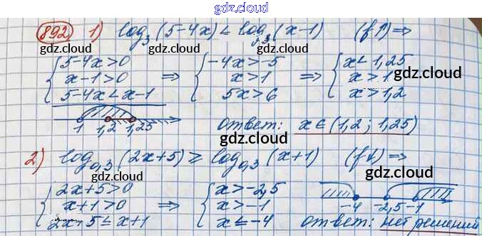 Ответ на задание 892 Учебник Алгебра за 10 (десятый) класс Колягин, Ткачёва, Федорова, Шабунин Базовый и углубленный уровень 2017