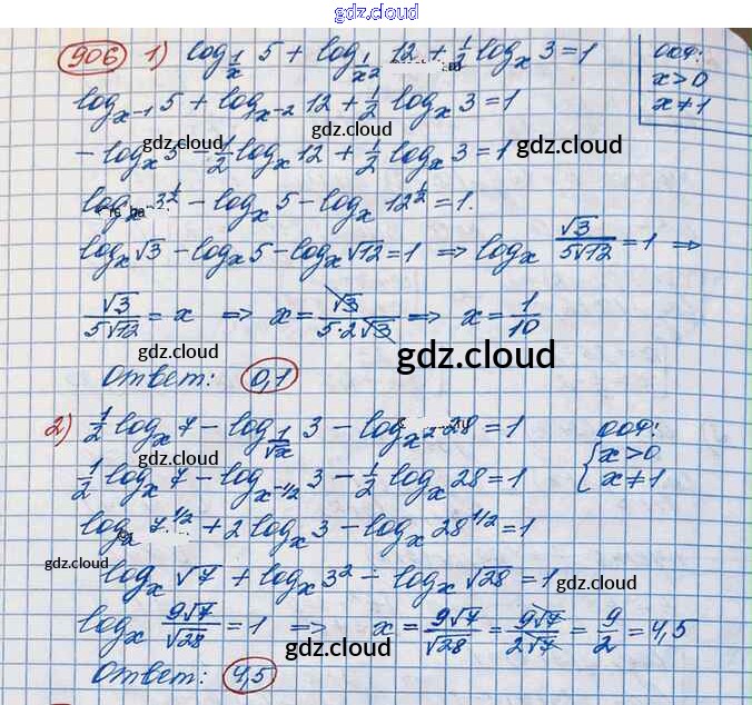 Ответ на задание 906 Учебник Алгебра за 10 (десятый) класс Колягин, Ткачёва, Федорова, Шабунин Базовый и углубленный уровень 2017