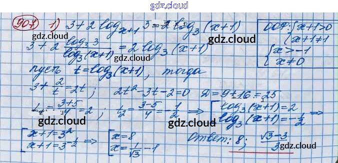 Ответ на задание 907 Учебник Алгебра за 10 (десятый) класс Колягин, Ткачёва, Федорова, Шабунин Базовый и углубленный уровень 2017