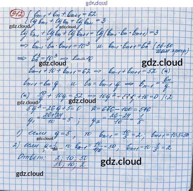 Ответ на задание 912 Учебник Алгебра за 10 (десятый) класс Колягин, Ткачёва, Федорова, Шабунин Базовый и углубленный уровень 2017