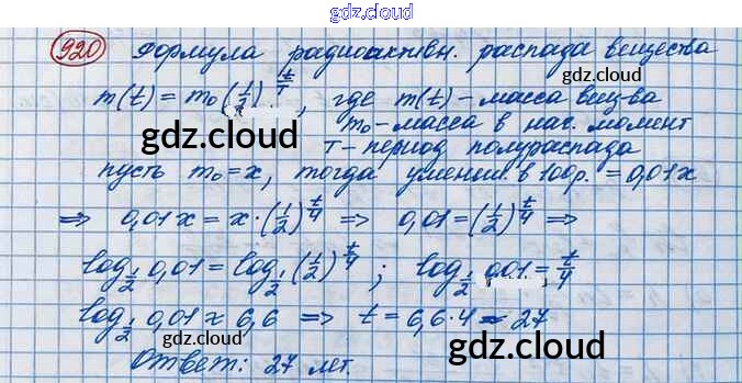 Ответ на задание 920 Учебник Алгебра за 10 (десятый) класс Колягин, Ткачёва, Федорова, Шабунин Базовый и углубленный уровень 2017