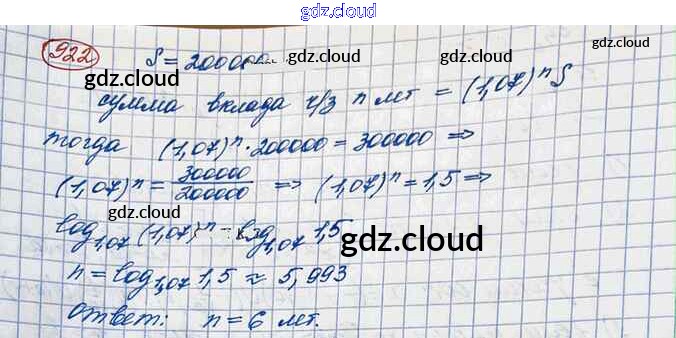 Ответ на задание 922 Учебник Алгебра за 10 (десятый) класс Колягин, Ткачёва, Федорова, Шабунин Базовый и углубленный уровень 2017