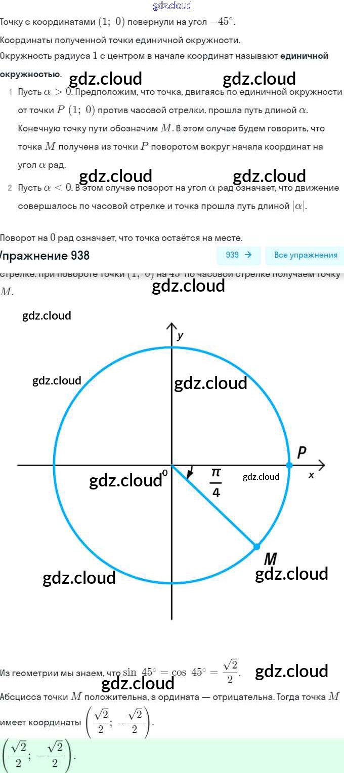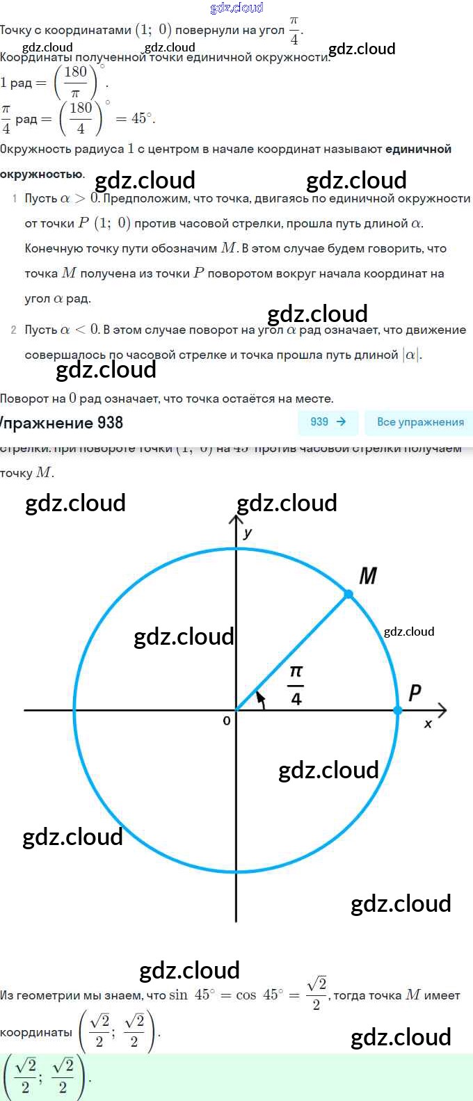 Ответ на задание 938 Учебник Алгебра за 10 (десятый) класс Колягин, Ткачёва, Федорова, Шабунин Базовый и углубленный уровень 2017