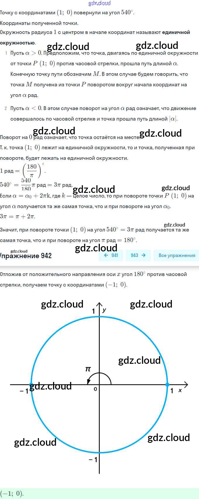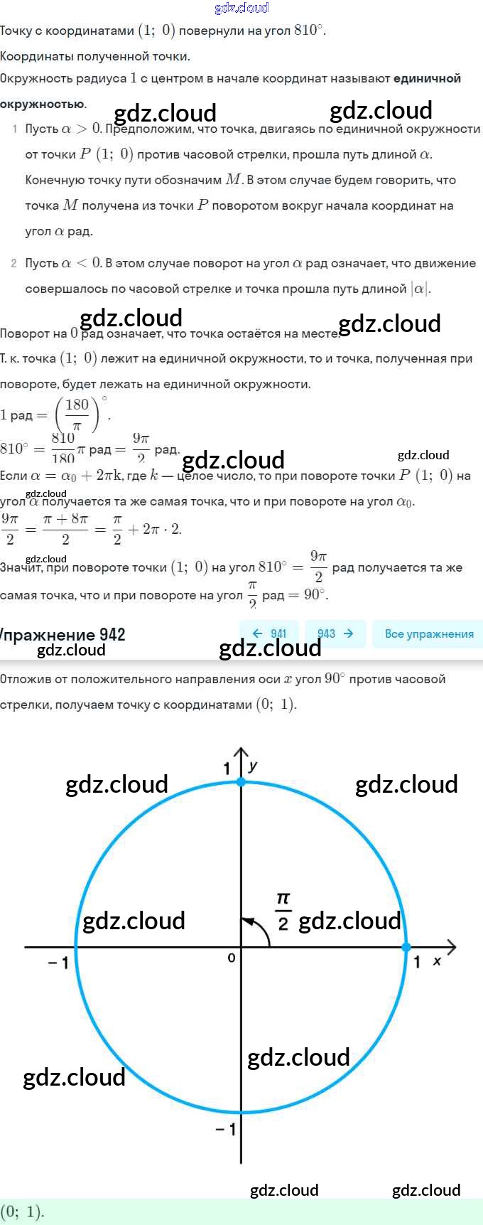 Ответ на задание 942 Учебник Алгебра за 10 (десятый) класс Колягин, Ткачёва, Федорова, Шабунин Базовый и углубленный уровень 2017