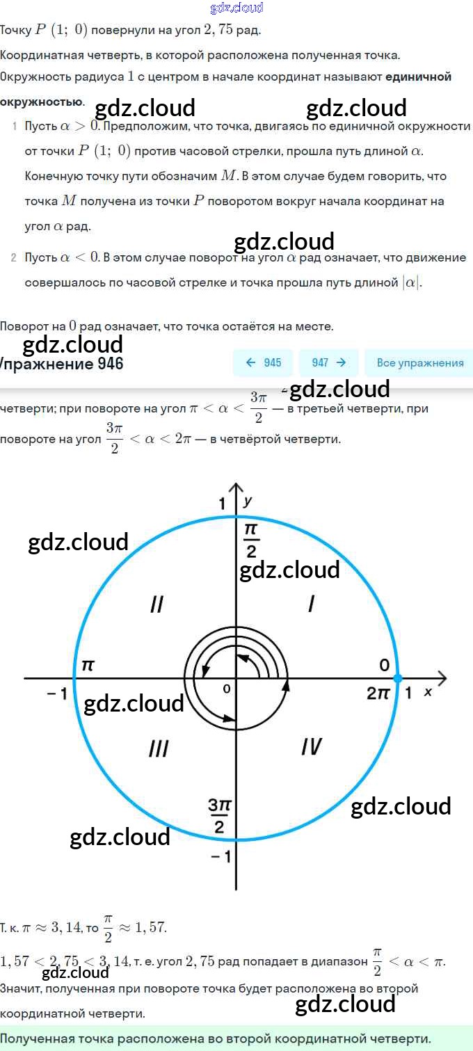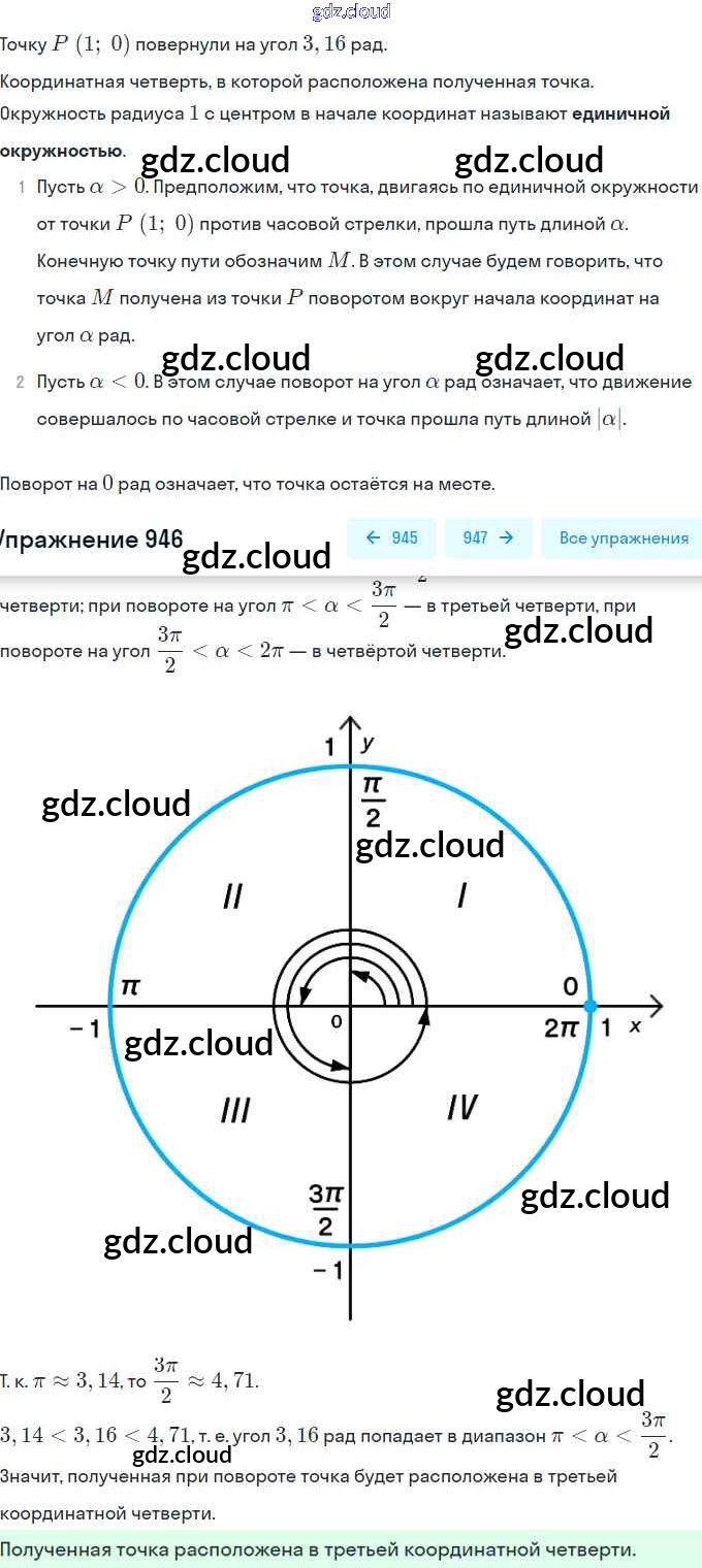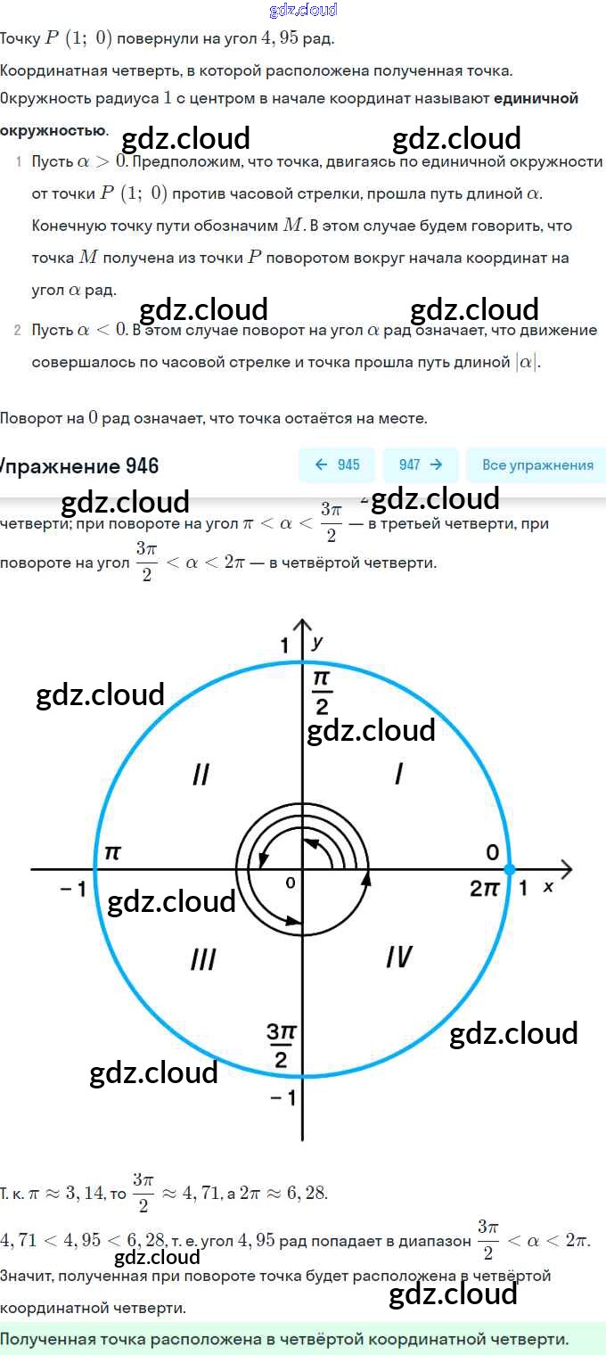 Ответ на задание 946 Учебник Алгебра за 10 (десятый) класс Колягин, Ткачёва, Федорова, Шабунин Базовый и углубленный уровень 2017