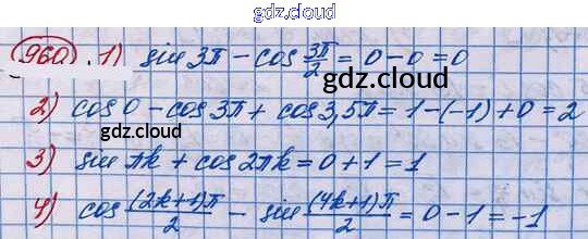 Ответ на задание 960 Учебник Алгебра за 10 (десятый) класс Колягин, Ткачёва, Федорова, Шабунин Базовый и углубленный уровень 2017