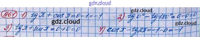 Ответ на задание 961 Учебник Алгебра за 10 (десятый) класс Колягин, Ткачёва, Федорова, Шабунин Базовый и углубленный уровень 2017