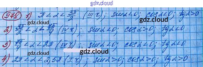 Ответ на задание 978 Учебник Алгебра за 10 (десятый) класс Колягин, Ткачёва, Федорова, Шабунин Базовый и углубленный уровень 2017