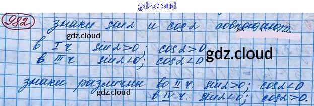 Ответ на задание 982 Учебник Алгебра за 10 (десятый) класс Колягин, Ткачёва, Федорова, Шабунин Базовый и углубленный уровень 2017