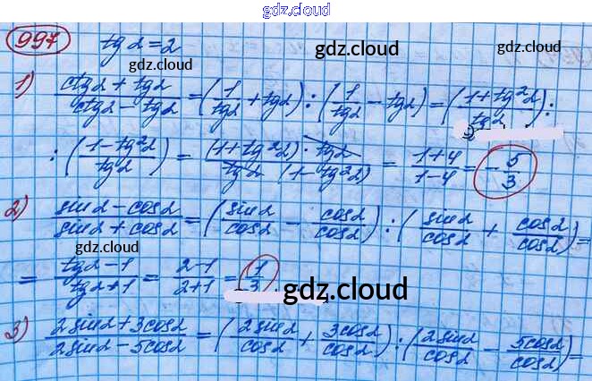 Ответ на задание 997 Учебник Алгебра за 10 (десятый) класс Колягин, Ткачёва, Федорова, Шабунин Базовый и углубленный уровень 2017