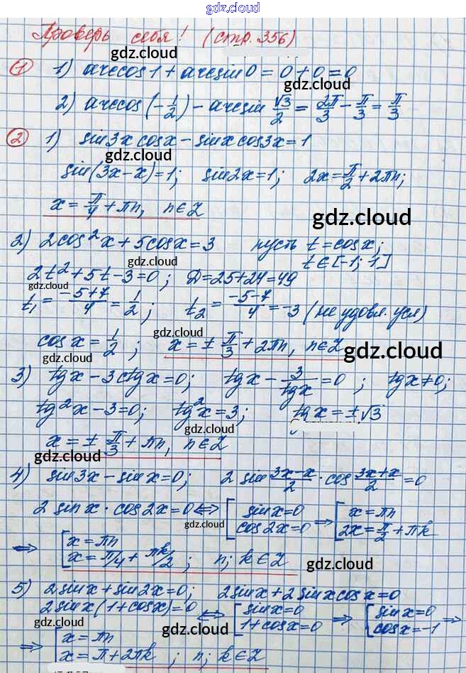 Ответ на задание 9. стр. 356 Учебник Алгебра за 10 (десятый) класс Колягин, Ткачёва, Федорова, Шабунин Базовый и углубленный уровень 2017