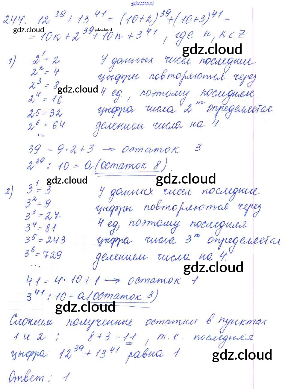 Ответ на задание 244 Учебник Алгебра за 10 (десятый) класс Колягин, Ткачёва, Федорова, Шабунин Базовый и углубленный уровень 2017