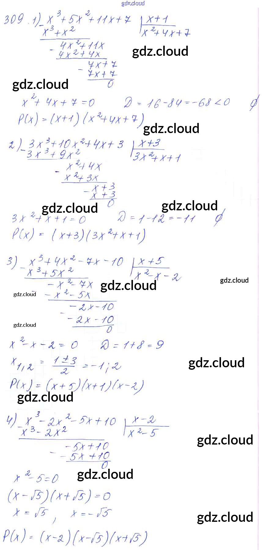 Ответ на задание 309 Учебник Алгебра за 10 (десятый) класс Колягин, Ткачёва, Федорова, Шабунин Базовый и углубленный уровень 2017