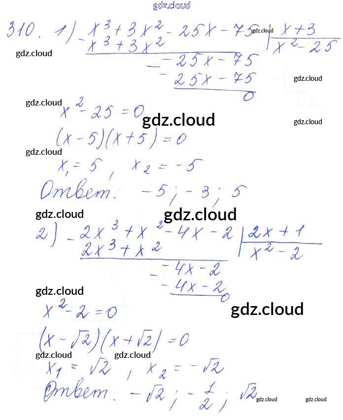 Ответ на задание 310 Учебник Алгебра за 10 (десятый) класс Колягин, Ткачёва, Федорова, Шабунин Базовый и углубленный уровень 2017