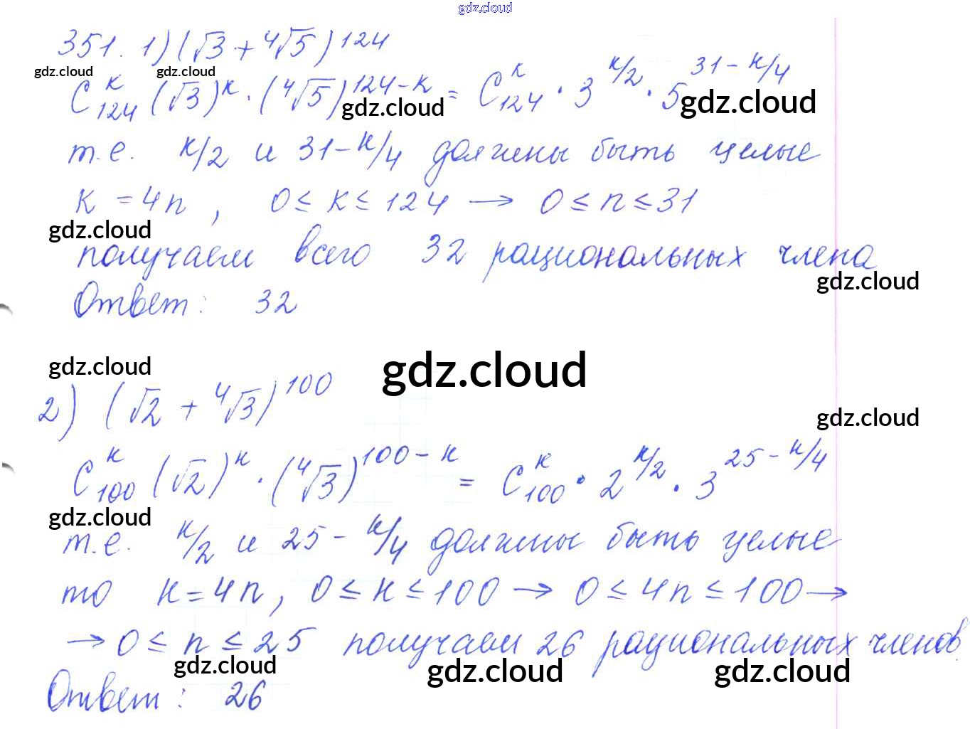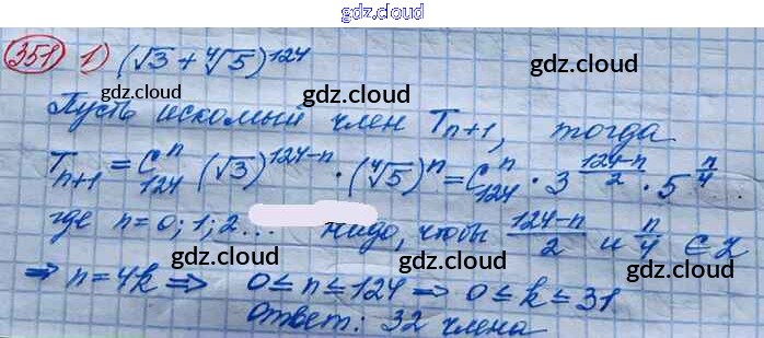 Ответ на задание 351 Учебник Алгебра за 10 (десятый) класс Колягин, Ткачёва, Федорова, Шабунин Базовый и углубленный уровень 2017