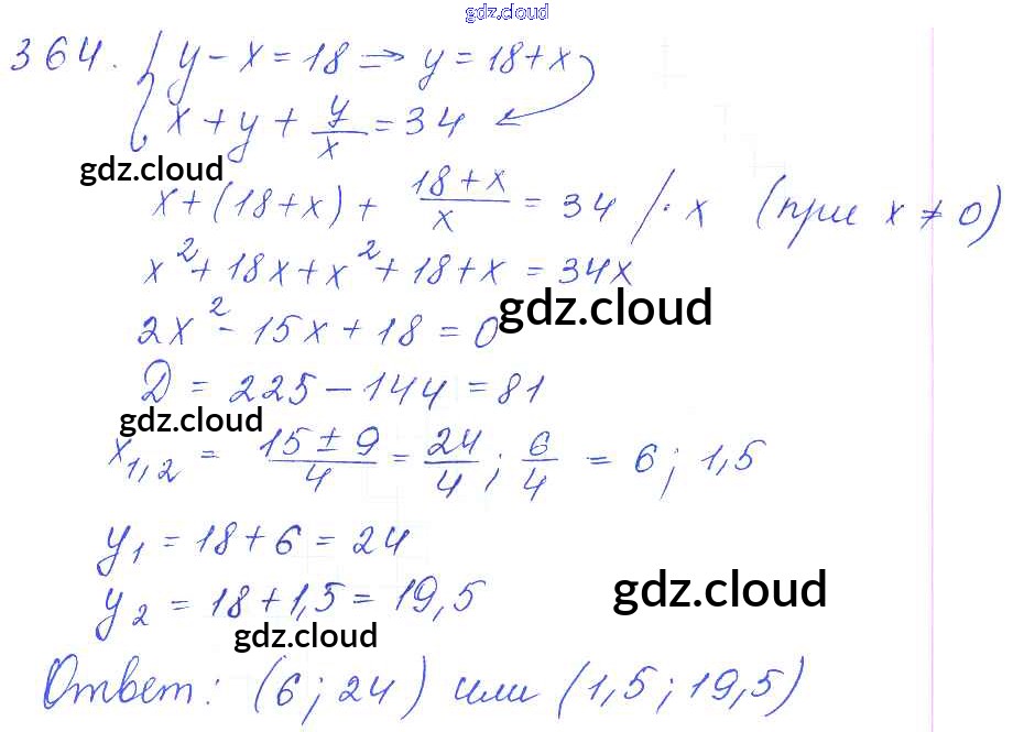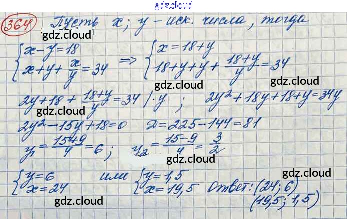 Ответ на задание 364 Учебник Алгебра за 10 (десятый) класс Колягин, Ткачёва, Федорова, Шабунин Базовый и углубленный уровень 2017