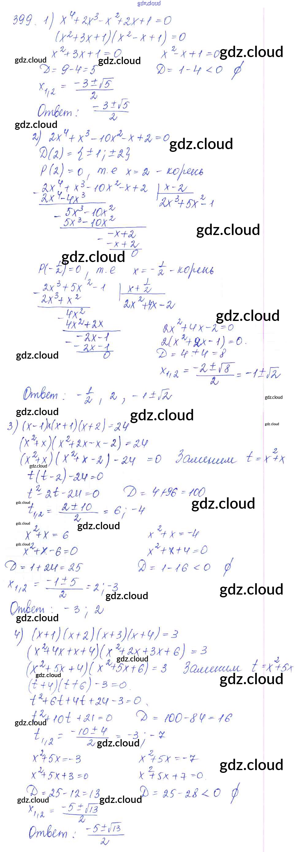 Ответ на задание 399 Учебник Алгебра за 10 (десятый) класс Колягин, Ткачёва, Федорова, Шабунин Базовый и углубленный уровень 2017