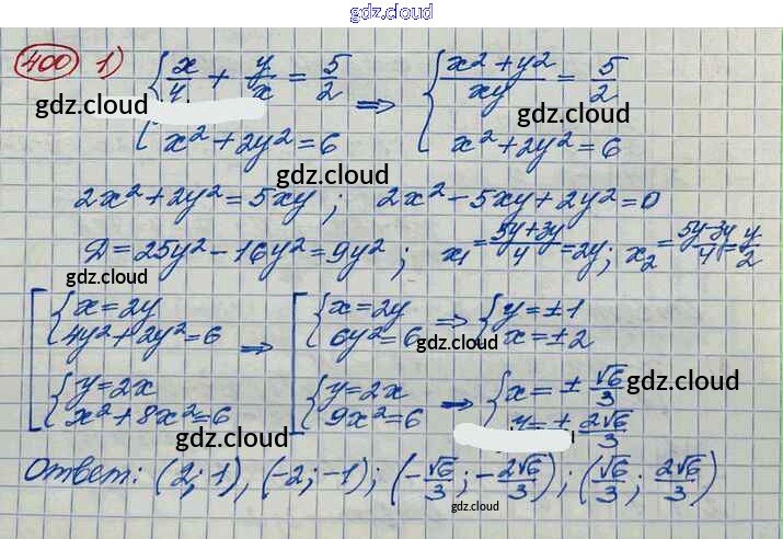 Ответ на задание 400 Учебник Алгебра за 10 (десятый) класс Колягин, Ткачёва, Федорова, Шабунин Базовый и углубленный уровень 2017