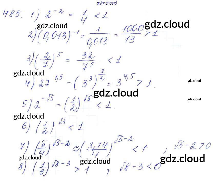 Ответ на задание 485 Учебник Алгебра за 10 (десятый) класс Колягин, Ткачёва, Федорова, Шабунин Базовый и углубленный уровень 2017