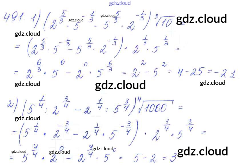 Ответ на задание 491 Учебник Алгебра за 10 (десятый) класс Колягин, Ткачёва, Федорова, Шабунин Базовый и углубленный уровень 2017