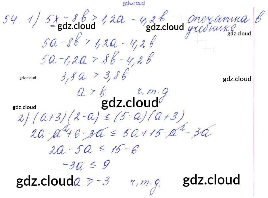 Ответ на задание 54 Учебник Алгебра за 10 (десятый) класс Колягин, Ткачёва, Федорова, Шабунин Базовый и углубленный уровень 2017