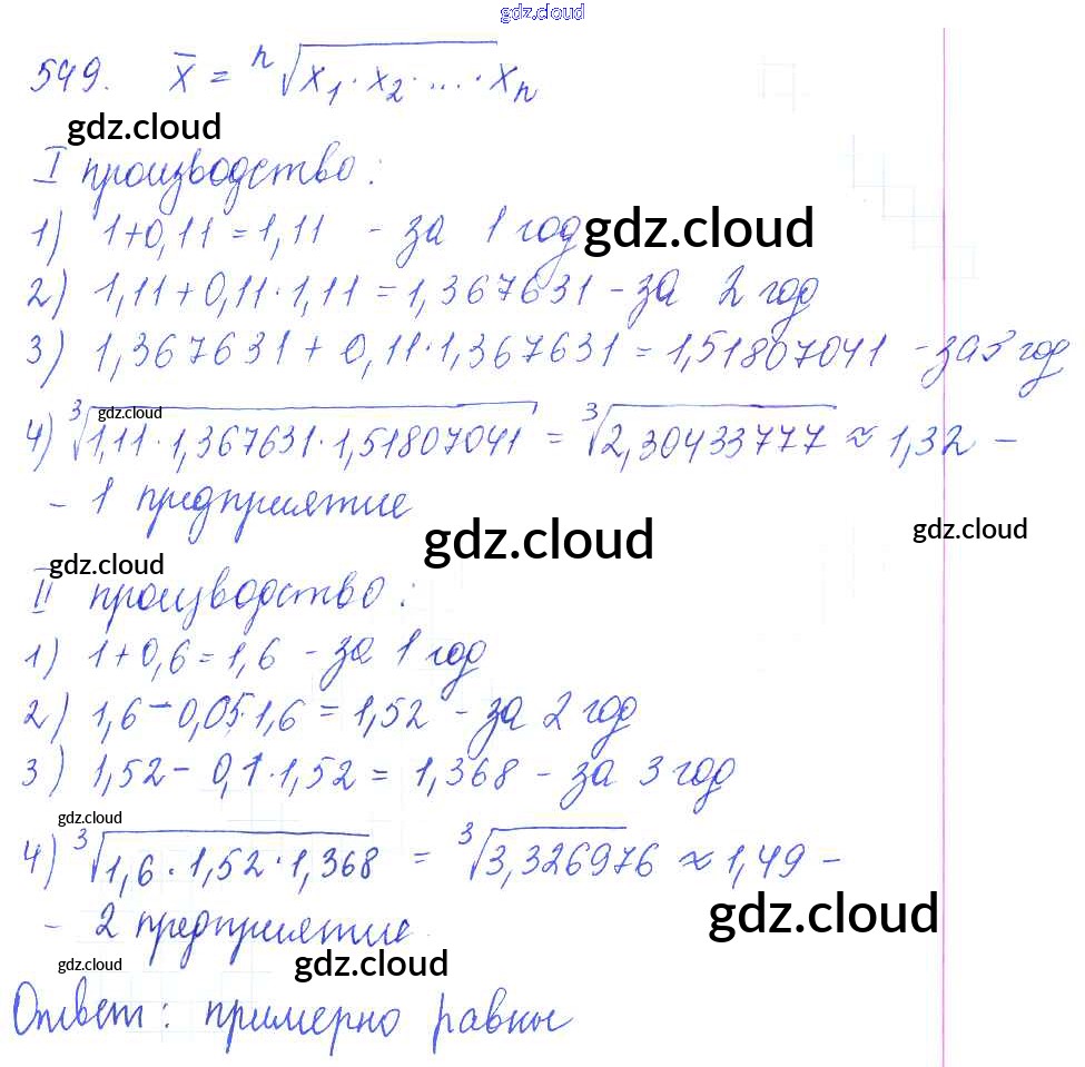 Ответ на задание 549 Учебник Алгебра за 10 (десятый) класс Колягин, Ткачёва, Федорова, Шабунин Базовый и углубленный уровень 2017