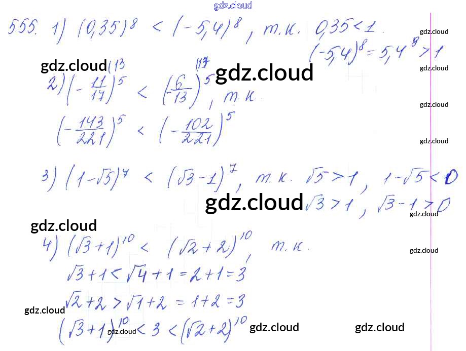 Ответ на задание 555 Учебник Алгебра за 10 (десятый) класс Колягин, Ткачёва, Федорова, Шабунин Базовый и углубленный уровень 2017