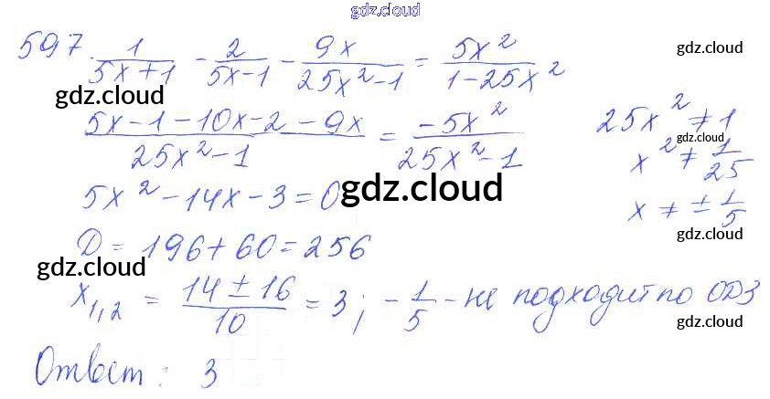 Ответ на задание 597 Учебник Алгебра за 10 (десятый) класс Колягин, Ткачёва, Федорова, Шабунин Базовый и углубленный уровень 2017