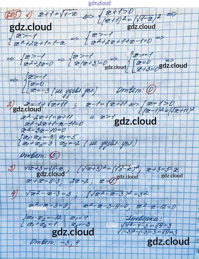 Ответ на задание 605 Учебник Алгебра за 10 (десятый) класс Колягин, Ткачёва, Федорова, Шабунин Базовый и углубленный уровень 2017