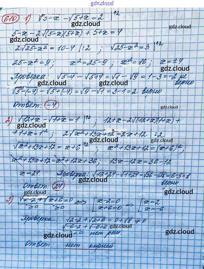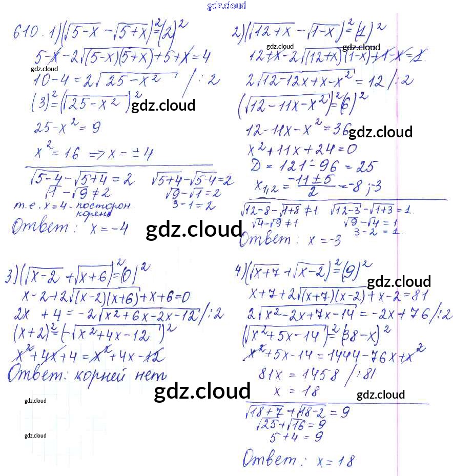 Ответ на задание 610 Учебник Алгебра за 10 (десятый) класс Колягин, Ткачёва, Федорова, Шабунин Базовый и углубленный уровень 2017