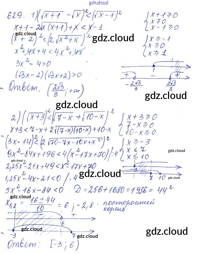 Ответ на задание 629 Учебник Алгебра за 10 (десятый) класс Колягин, Ткачёва, Федорова, Шабунин Базовый и углубленный уровень 2017