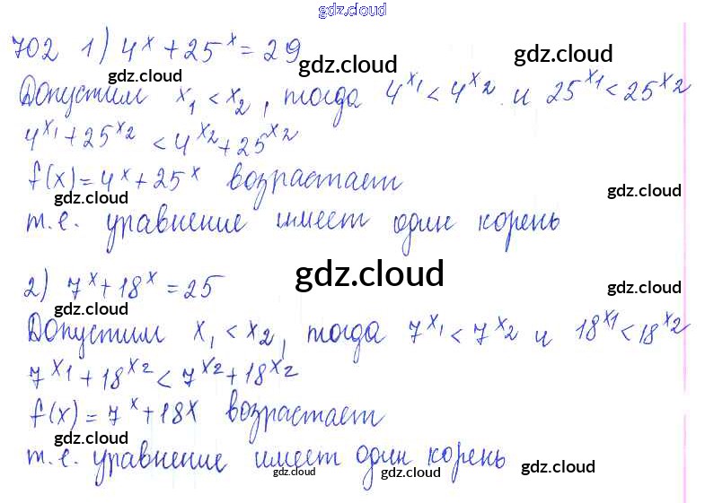 Ответ на задание 702 Учебник Алгебра за 10 (десятый) класс Колягин, Ткачёва, Федорова, Шабунин Базовый и углубленный уровень 2017