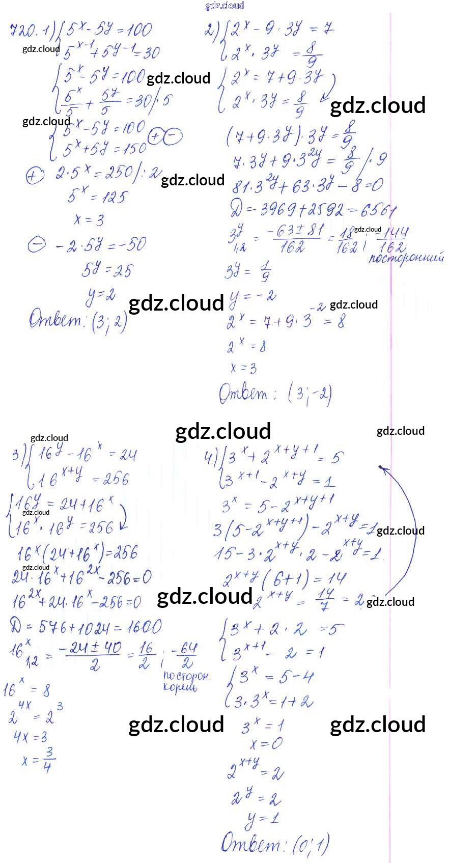 Ответ на задание 720 Учебник Алгебра за 10 (десятый) класс Колягин, Ткачёва, Федорова, Шабунин Базовый и углубленный уровень 2017