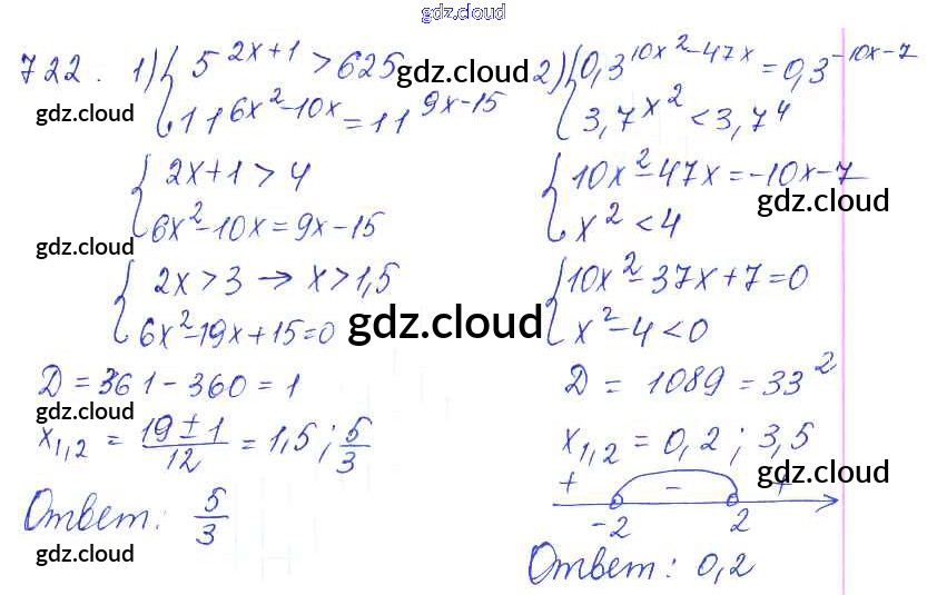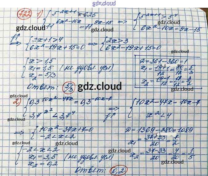 Ответ на задание 722 Учебник Алгебра за 10 (десятый) класс Колягин, Ткачёва, Федорова, Шабунин Базовый и углубленный уровень 2017