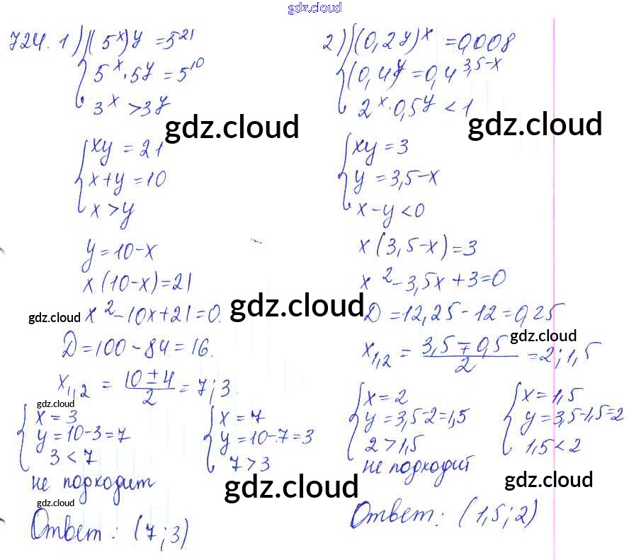Ответ на задание 724 Учебник Алгебра за 10 (десятый) класс Колягин, Ткачёва, Федорова, Шабунин Базовый и углубленный уровень 2017