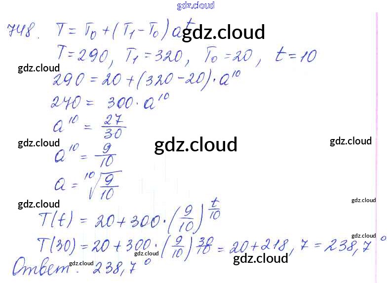 Ответ на задание 748 Учебник Алгебра за 10 (десятый) класс Колягин, Ткачёва, Федорова, Шабунин Базовый и углубленный уровень 2017