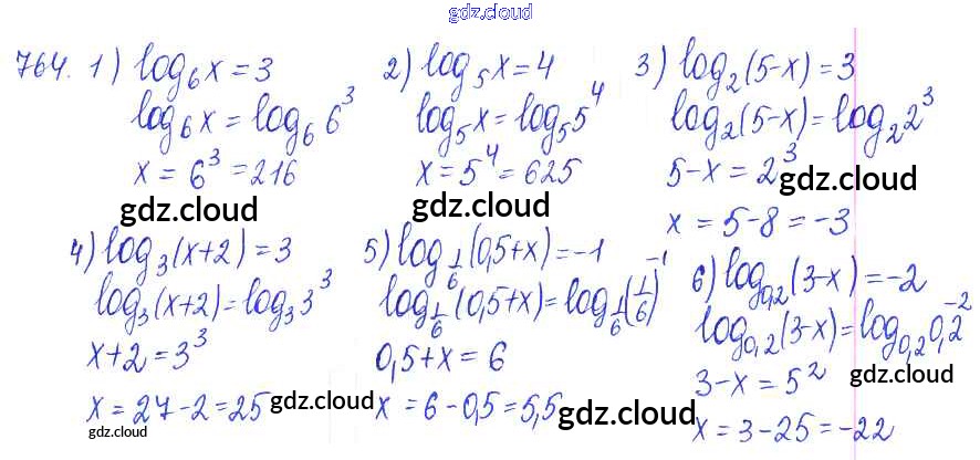Ответ на задание 764 Учебник Алгебра за 10 (десятый) класс Колягин, Ткачёва, Федорова, Шабунин Базовый и углубленный уровень 2017