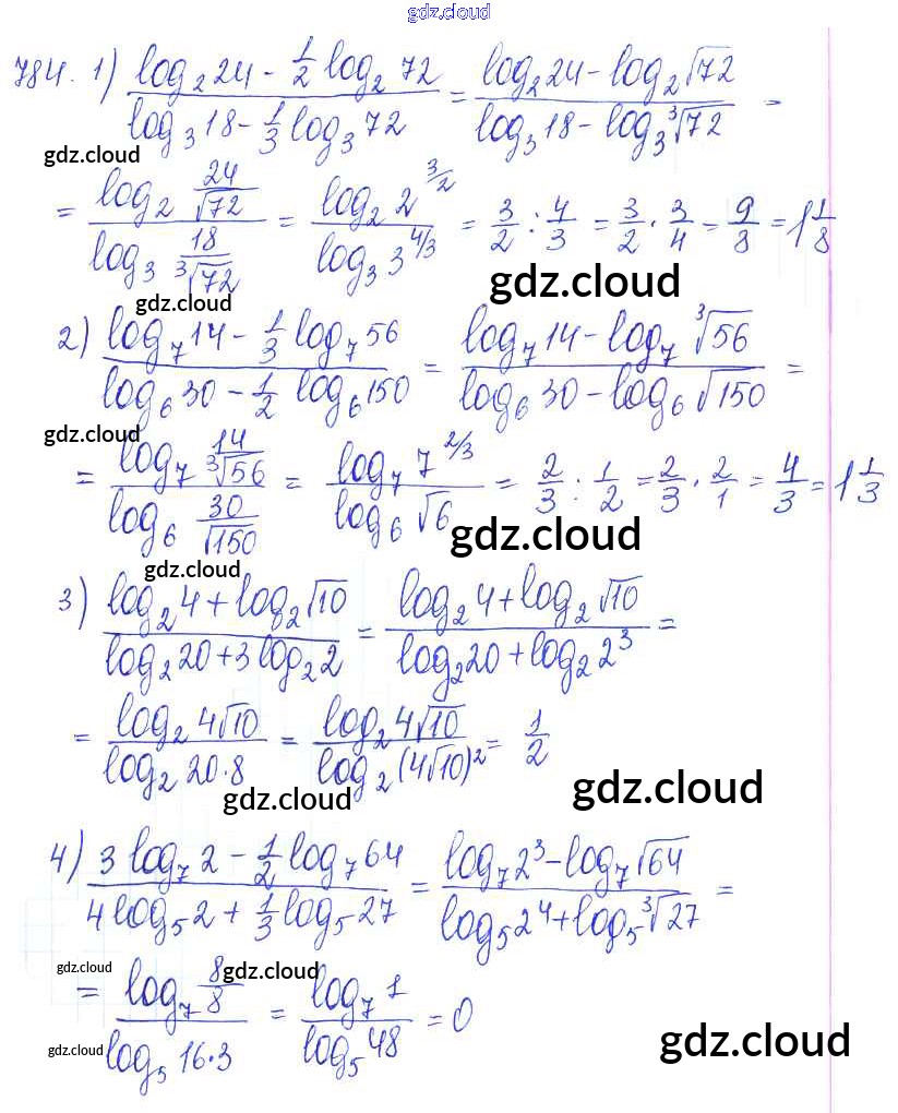 Ответ на задание 784 Учебник Алгебра за 10 (десятый) класс Колягин, Ткачёва, Федорова, Шабунин Базовый и углубленный уровень 2017