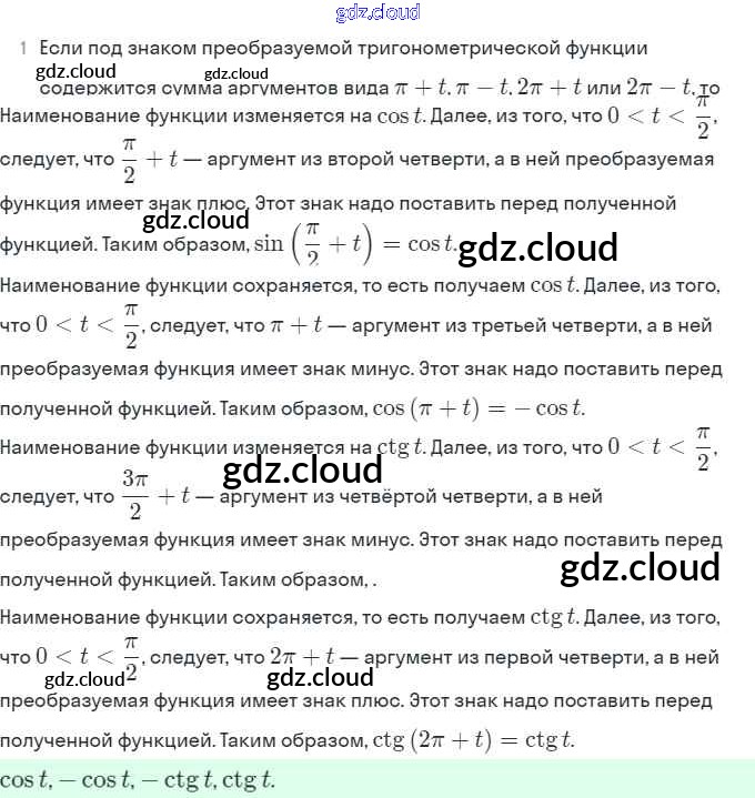 Ответы. §26. Формулы приведения по Алгебре 10 класс Учебник Мордкович Базовый и углубленный уровень Мнемозина