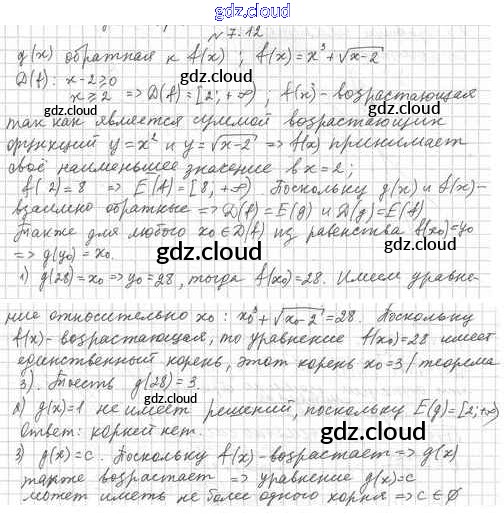 Ответ на задание 7.12 Учебник Алгебра за 10 (десятый) класс Мерзляк, Номировский, Поляков Алгоритм успеха Углубленный уровень 2019