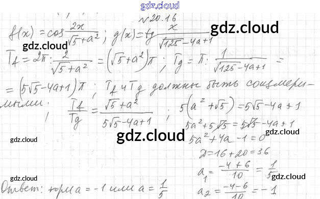 Ответ на задание 20.16 Учебник Алгебра за 10 (десятый) класс Мерзляк, Номировский, Поляков Алгоритм успеха Углубленный уровень 2019
