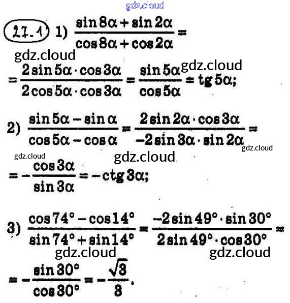 Ответ на задание 27.1 Учебник Алгебра за 10 (десятый) класс Мерзляк, Номировский, Поляков Алгоритм успеха Углубленный уровень 2019