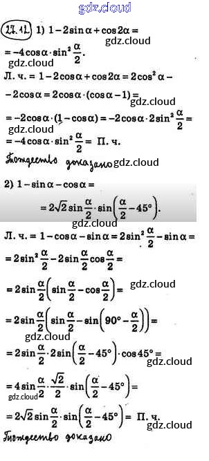 Ответ на задание 27.12 Учебник Алгебра за 10 (десятый) класс Мерзляк, Номировский, Поляков Алгоритм успеха Углубленный уровень 2019