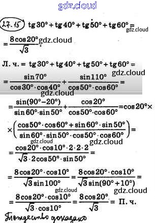 Ответ на задание 27.15 Учебник Алгебра за 10 (десятый) класс Мерзляк, Номировский, Поляков Алгоритм успеха Углубленный уровень 2019