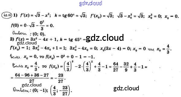 Ответ на задание 40.10 Учебник Алгебра за 10 (десятый) класс Мерзляк, Номировский, Поляков Алгоритм успеха Углубленный уровень 2019