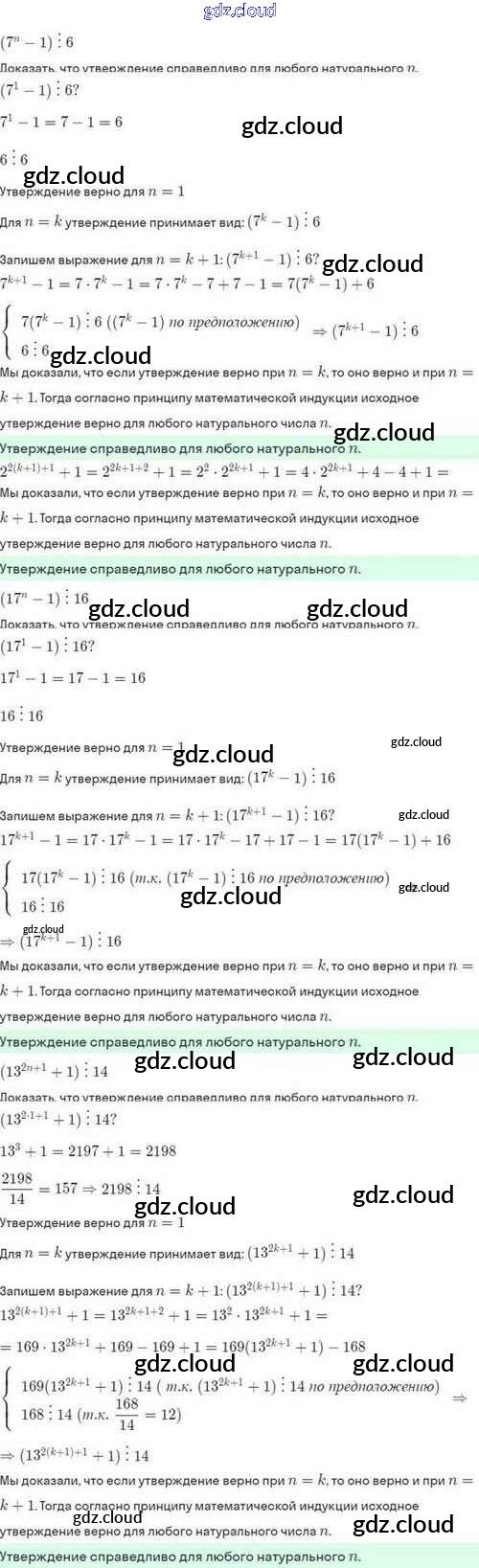 Ответы. §6. Метод математической индукции по Алгебре 10 класс Задачник Мордкович Базовый и углубленный уровень Мнемозина