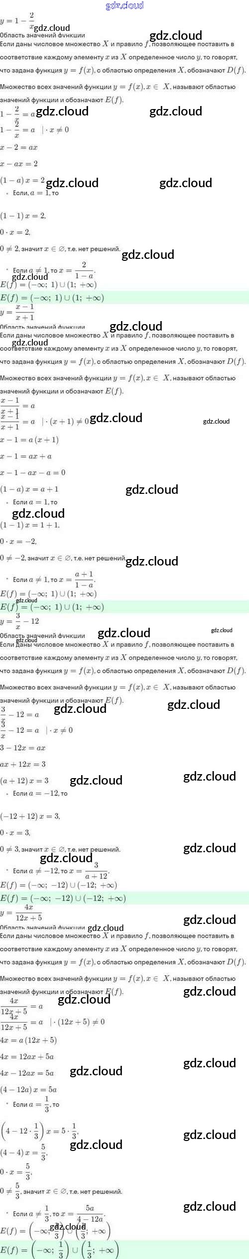 Ответы. §7. Определение числовой функции и способы её задания по Алгебре 10 класс Задачник Мордкович Базовый и углубленный уровень Мнемозина
