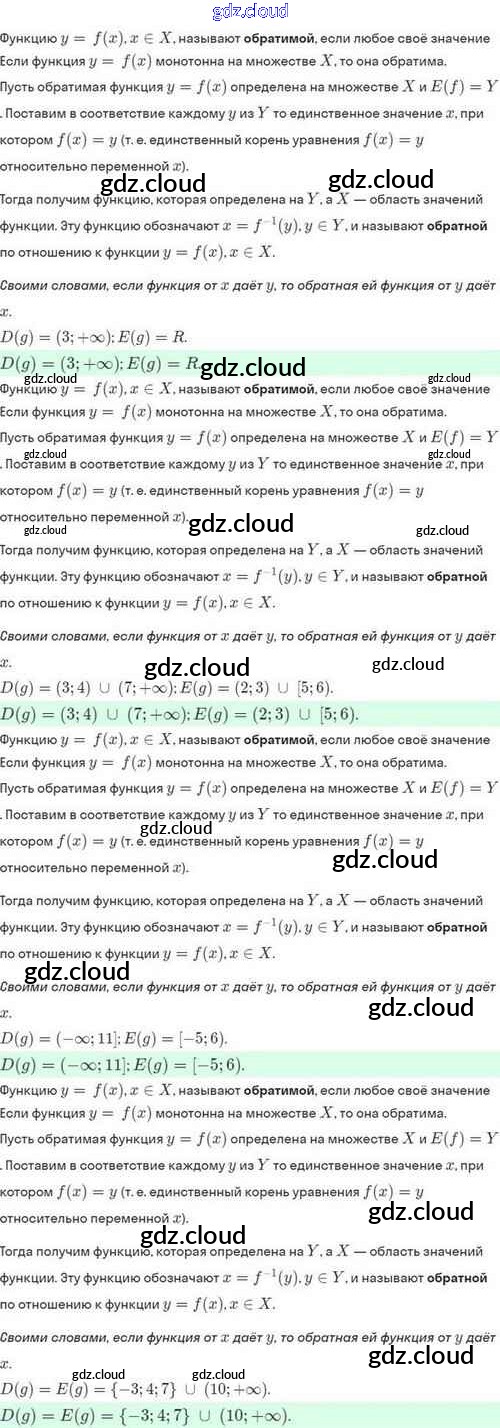 Ответы. §10. Обратная функция по Алгебре 10 класс Задачник Мордкович Базовый и углубленный уровень Мнемозина